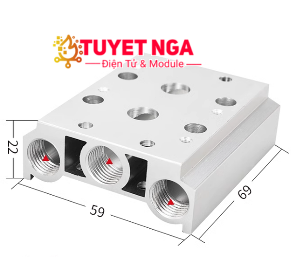 200M-2F Đế Van Điện Từ 5/2 4V210 G1/4 Ren 12.5mm sử dụng lắp 4 van điện từ cùng lúc