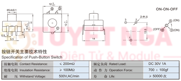 Nút Nhấn Giữ 6 Chân 5.8x5.8mm