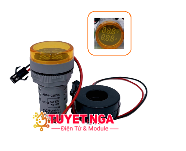 AD16-22DVA Đồng Hồ Điện Áp Dòng Điện AC 22mm là một thiết bị kết hợp giữa đèn cảnh báo LED và hiển thị số điện áp – dòng điện dạng mini. Sản phẩm thường đi kèm với một biến dòng (CT) dạng vòng, dùng để đo dòng điện gián tiếp mà không cần mắc nối tiếp vào tải. Thiết bị có thể hoạt động trong dải điện áp rộng (AC 20–500V) và đo dòng lên tới 100A.