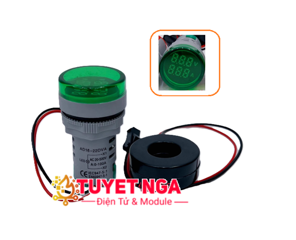 AD16-22DVA Đồng Hồ Điện Áp Dòng Điện AC 22mm là một thiết bị kết hợp giữa đèn cảnh báo LED và hiển thị số điện áp – dòng điện dạng mini. Sản phẩm thường đi kèm với một biến dòng (CT) dạng vòng, dùng để đo dòng điện gián tiếp mà không cần mắc nối tiếp vào tải. Thiết bị có thể hoạt động trong dải điện áp rộng (AC 20–500V) và đo dòng lên tới 100A.
