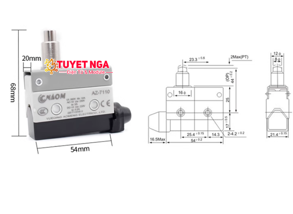 Kiểu tiếp điểm: Một tiếp điểm thường mở và một tiếp điểm thường đóng