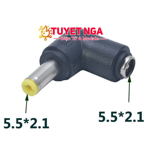 Đầu Chuyển DC 5.5x2.1mm sang 5.5x2.1mm Cong 90 Độ
