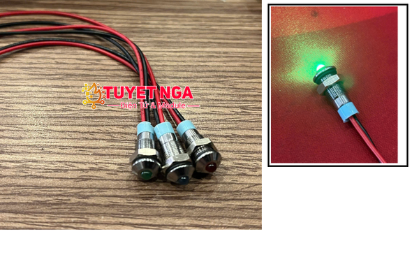 Đèn Báo Kim Loại Chống Nước 12V 6mm Màu Xanh Lá dây dài 20cm