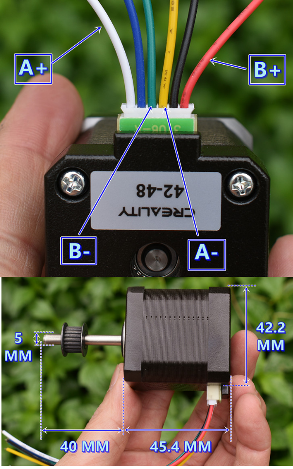 Động Cơ Bước 42 Cao 45.4mm khi hoạt động tiếng ồn thấp chuyển động trơn tru là động cơ 2 pha 4 dây.Động cơ này là động cơ điều khiển có độ chính xác cao thường sử dụng trong máy in CREALITY