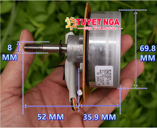 uất. Công suất được ước tính khoảng 100W dựa trên so sánh thực tế với động cơ BLDC Nidec (48F704L470) công suất 80W. Qua đánh giá thực tế, mẫu motor này có lực kéo và công suất mạnh hơn, nên được suy đoán đạt khoảng 100W (mang tính tham khảo, không phải thông số công bố chính thức).