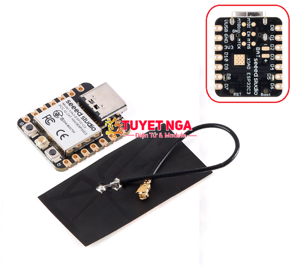 Seeeduino XIAO Mạch ESP32C3 Wifi BLE 5.0 là bo mạch phát triển IOT dựa trên nacgh ESP32-C3,mạch mini có hiệu suất cao, công suất thấp tiết kiệm chi phí thường được sử dụng ứng dụng không dây.Có 11I/O có thể được sủ dụng làm chân PWM và 4 I/O có thể làm chân ADC.Hỗ trợ giao diện SPI, UART,I2C,I2S... Thông số kỹ thuật :