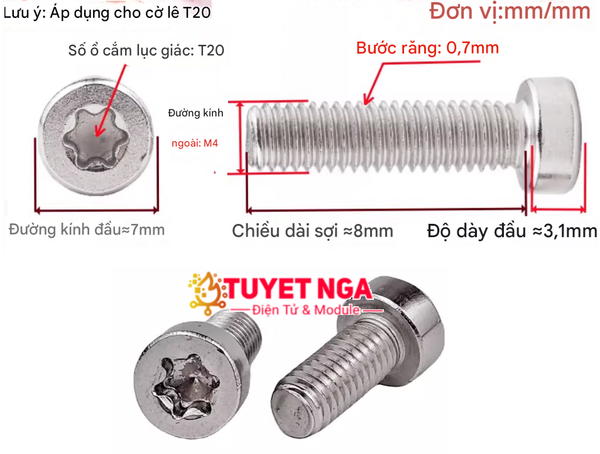 GB2671.1 M4x8 Bu Lông Ốc Hoa Mai M4 Dài 8mm Inox 304