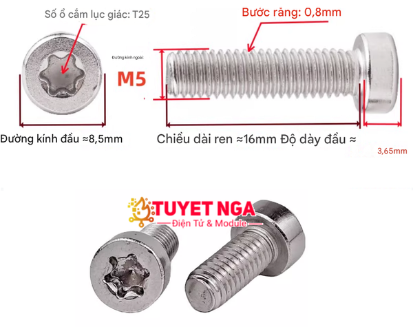 GB2671.1 M5x16 Bu Lông Ốc Hoa Mai M5 Dài 16mm Inox 304