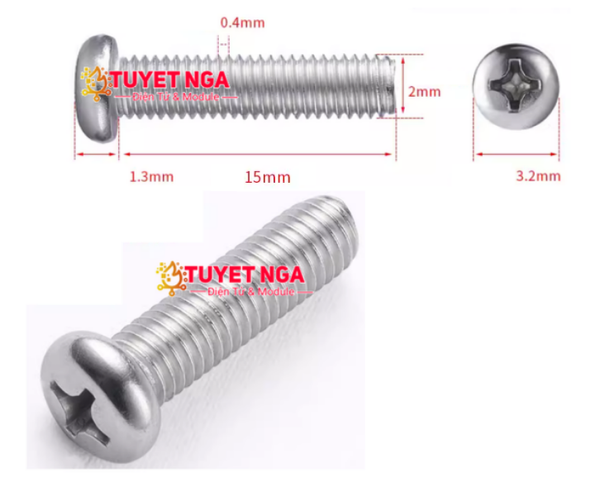 M2x15 Ốc Inox M2 Dài 15mm (10pcs)