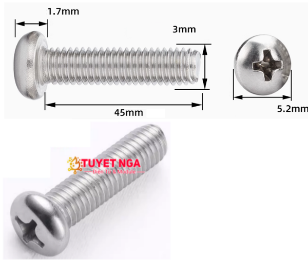 M3x45 Ốc Inox 304 M3 Dài 45mm (10pcs)