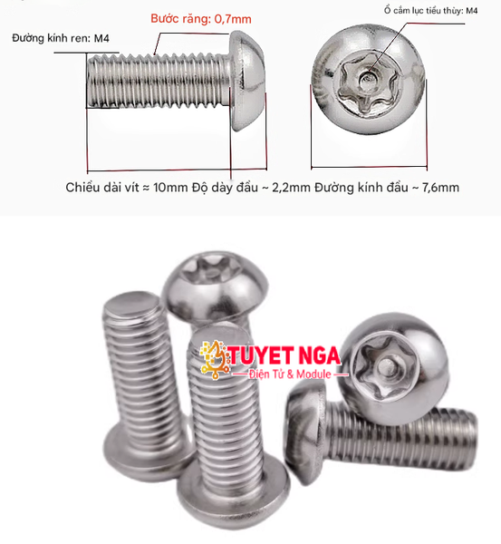 M4x10 Bu Lông Lục Giác Đầu Tròn M4 Dài 10mm Inox 304
