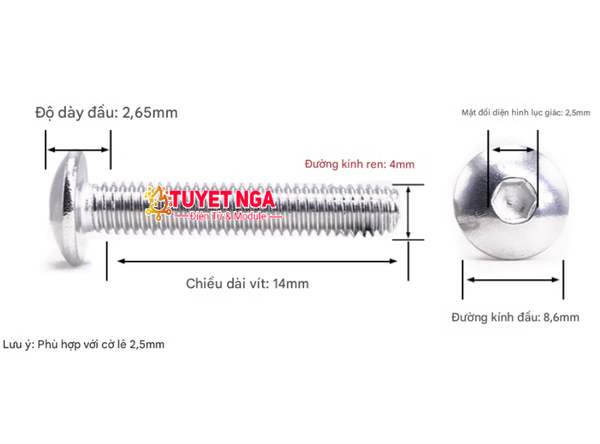M4x14 Bu Lông Lục Giác Đầu Phẳng Bán Nguyệt M4 Dài 14mm Inox 304