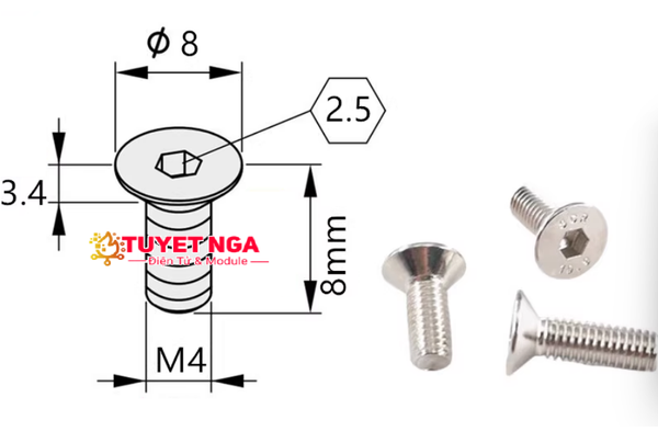 M4x8 Lục Giác Chìm Đầu Bằng M4 Dài 8mm