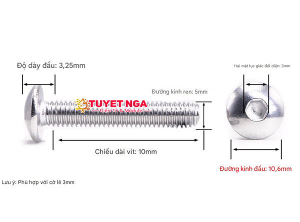 M5x10 Bu Lông Lục Giác Đầu Phẳng Bán Nguyệt M5 Dài 10mm Inox 304