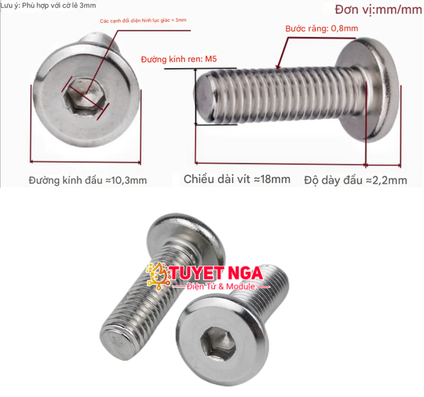 M5x18 Vít Lục Giác Đầu Bằng M5 Dài 18mm Inox 304