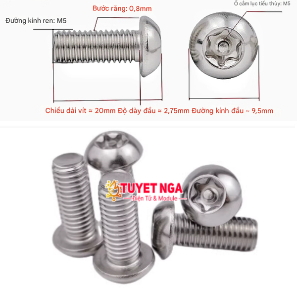 M5x20 Bu Lông Lục Giác Đầu Tròn M5 Dài 20mm Inox 304