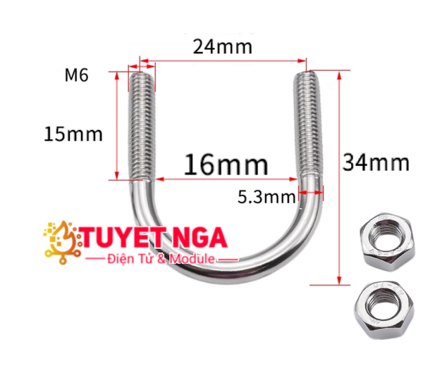 M6x16 Bu Lông Chữ U Trục 6mm Rộng 16mm Inox 304 Ubolt