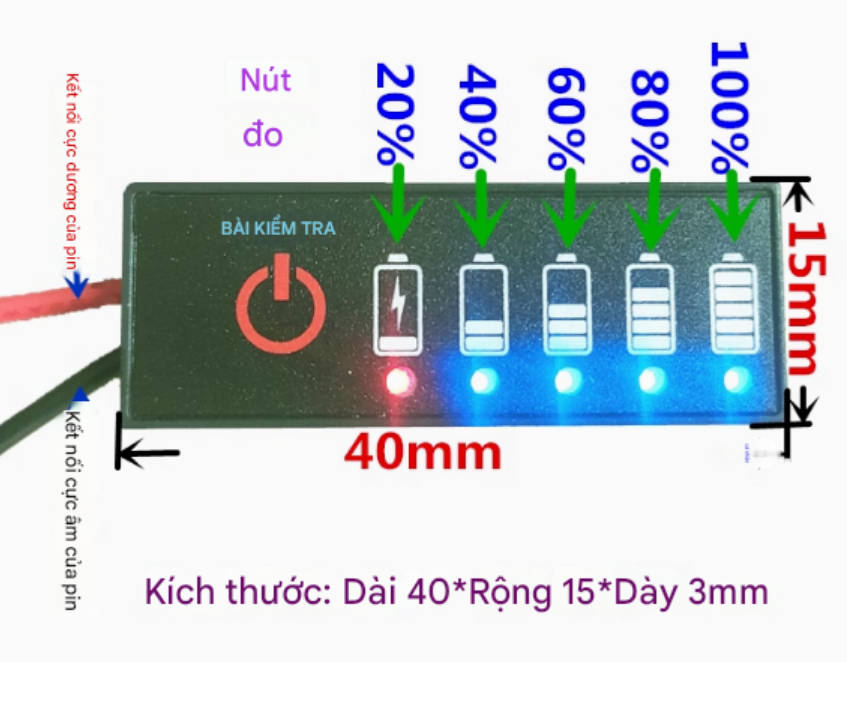 Ứng dụng :Xe điện mini, loa kéo, quạt sạc, pin dự phòng, xe đạp điện, hoặc bất cứ thiết bị nào cần hiển thị mức pin nhanh gọn.