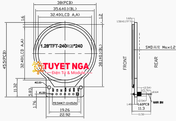 Màn Hình LCD TFT 1.28 Inch IPS GC9A01 SPI