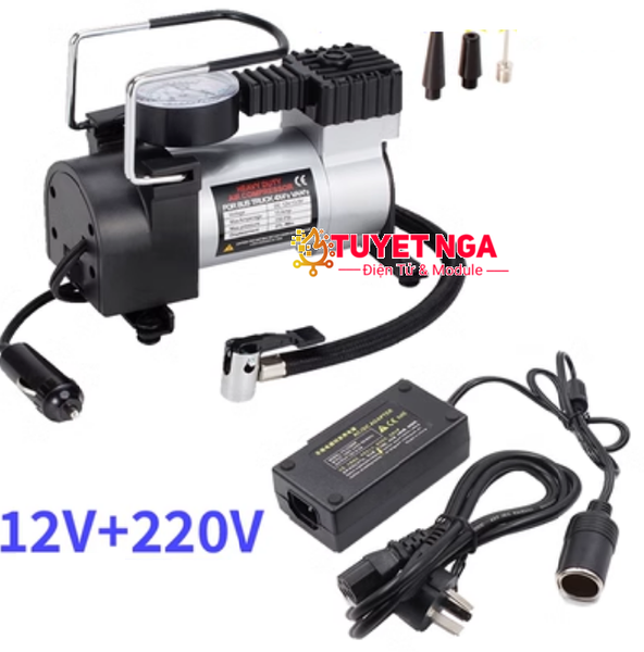 Máy Bơm Ô Tô Xe Máy Kèm Bộ Nguồn sử dụng nguồn kép chuyển đổi kép 220V sang 12V
