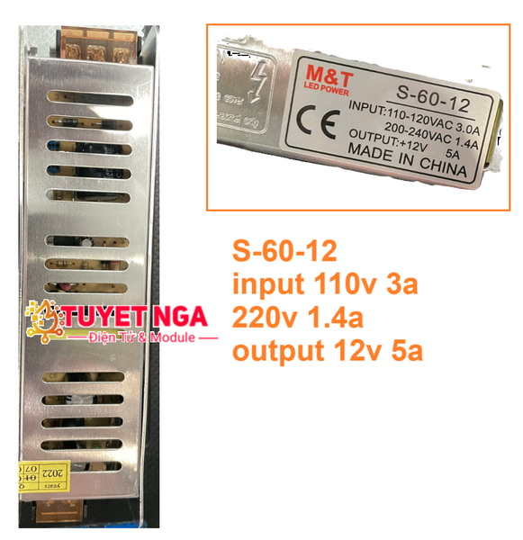 Điện áp đầu ra : 12V 5A