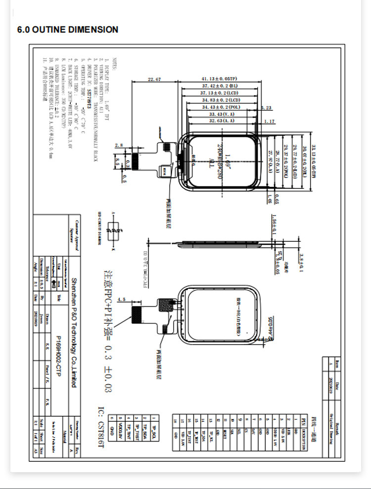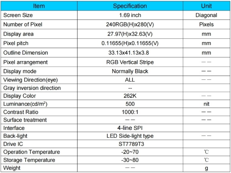 P169H002-CTP Màn Hình Cảm Ứng Điện Dung TFT 1.69 Inch SPI ST7789 240x280 Full Viewing Angle IPS TFT LCD với công nghệ IPS mang lại góc nhìn rộng và chất lượng hiển thị sắc nét. Độ phân giải 240x280 pixels và cảm ứng điện dung cho phép thao tác Giao diện SPI 4 dòng giúp kết nối nhanh chóng và ổn định, sử dụng chip ST7789V cho hiệu suất cao. Sản phẩm phù hợp cho đồng hồ thông minh, thiết bị đeo tay với nhiệt độ hoạt động từ -20°C đến 70°C.