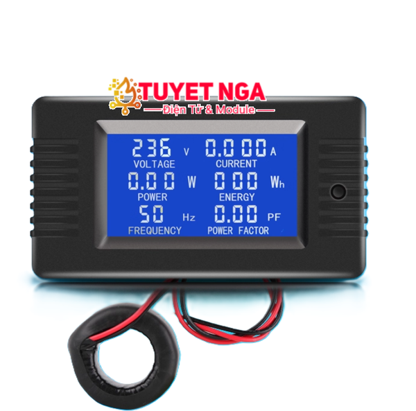Điểm nổi bật của PZEM-022 chính là khả năng đo tần số và hệ số công suất, hai thông số thường bị bỏ qua ở các thiết bị đo giá rẻ nhưng lại rất quan trọng để đánh giá chất lượng nguồn điện. Sản phẩm sử dụng biến dòng (CT) dạng kẹp, giúp lắp đặt an toàn, dễ dàng mà không cần cắt dây điện.