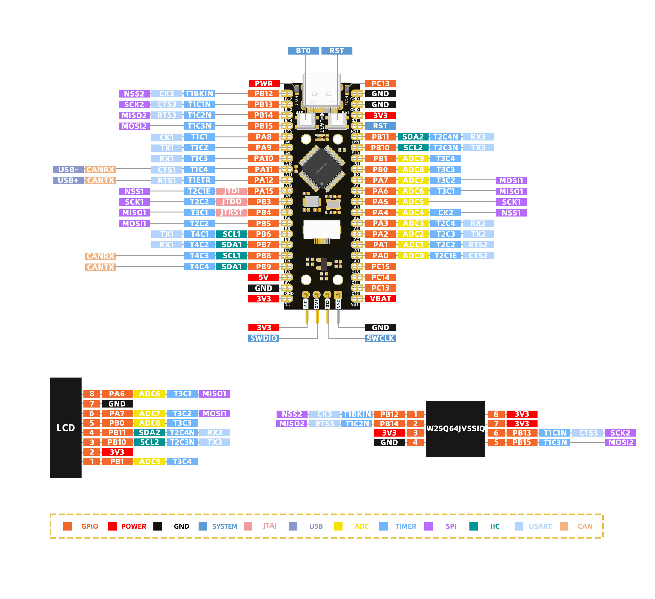 STM32F103C8T6 Mạch Phát Triển STM32 Oled 0.96 Inch hỗ trợ flash 8MB.