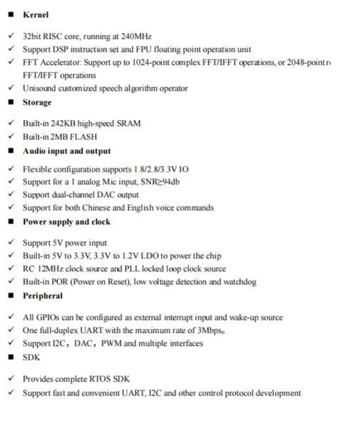 VC-02-Kit AI Mạch Nhận Dạng Giọng Nói Ai-Thinker là phiên bản Tiếng Anh sử dụng giao tiếp UART Ch340 mạch bao gồm loa phát âm thanh và mic thu trên mạch để nhận diện giọng nói.Nhận dạng tối đa 150 lệnh điều khiển ứng dụng cho nhà thông minh, hoặc phát triển phần mềm thử nghiệm. Thông số kỹ thuật :